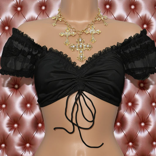 Amelia Ruched Off Shoulder Dirndl Blouse - Black