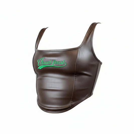 Vegan Leather Brown Corset Top