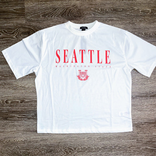 Small White Oversized Seattle Graphic Retro Tee