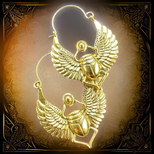 Gold Egyptian Scarab Beetle Huggie Hoop Earrings