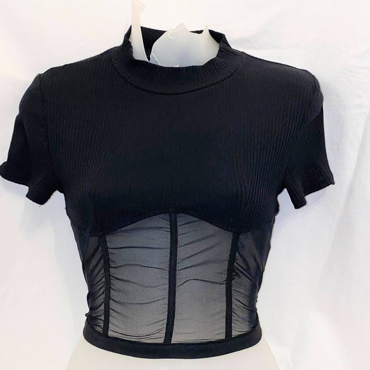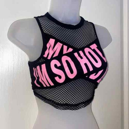 Small Mesh I'm So Hot Pink Tape Crop Top
