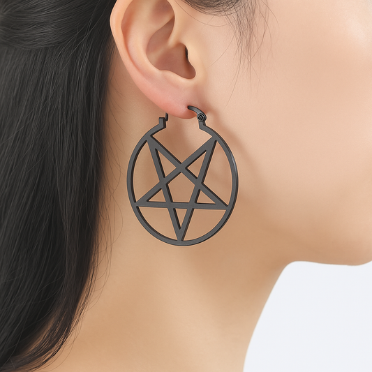 New Gold Goth Pentagram Hoop Earrings Gothic Bae Pastel Wicca Witch Pentacle