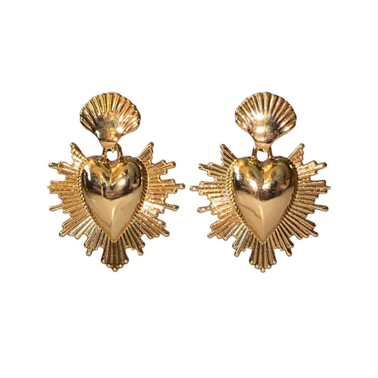 Gold Milagro Corazon Sacred Heart Dangle Earrings
