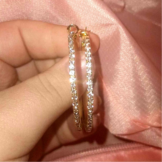Rhinestone Lined Gold Hoop Earrings