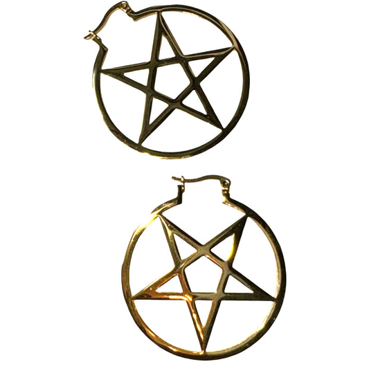 New Gold Goth Pentagram Hoop Earrings Gothic Bae Pastel Wicca Witch Pentacle