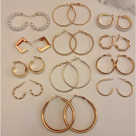 24 pieces gold hoop earrings mixed lot set Pearl Geometric Square