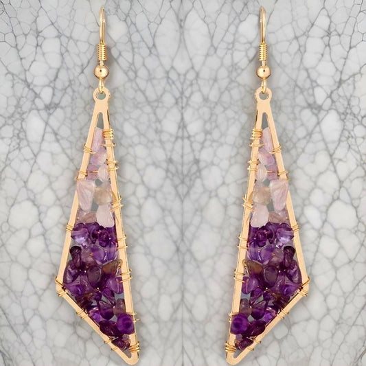 New Moon Geode Amethyst Dangle Earrings Gold Crystal Quartz Stone Druzy Pink