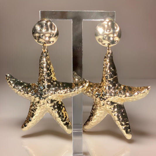 Mermaid Yellow Gold Metallic Star Fish Earrings
