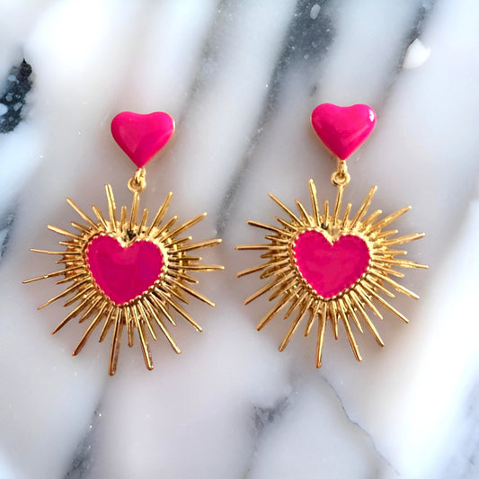 Gold Milagro Corazon Sacred Heart Dangle Earrings