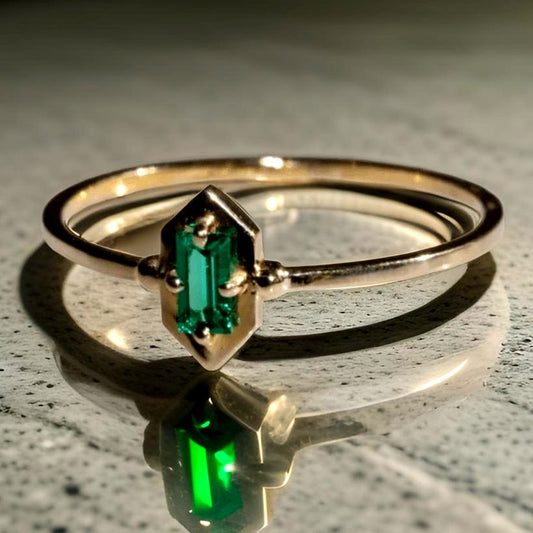 Emerald Cut Green Pronged Gold Ring