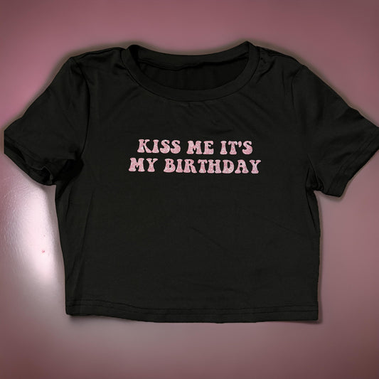 "Kiss Me, It's My Birthday" Baby Crop Tee