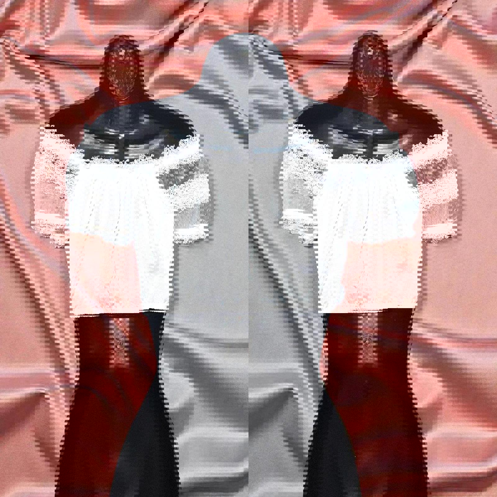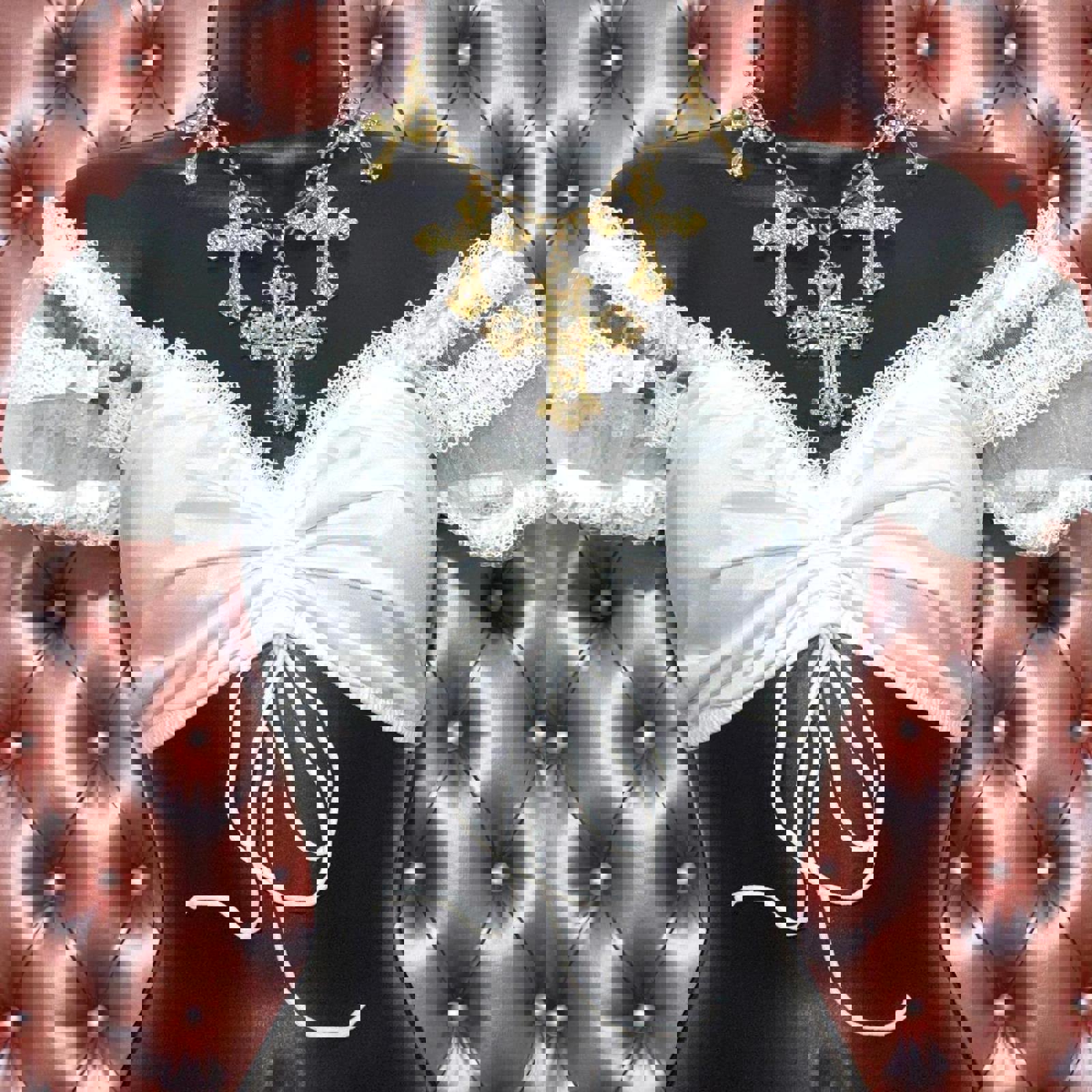 A spellbinding white lace blouse with ethereal puff sleeves and a delicate ruched drawstring front. Soft, romantic, and quietly powerful—like something worn by a modern-day enchantress wandering between dreams and daylight. ✨